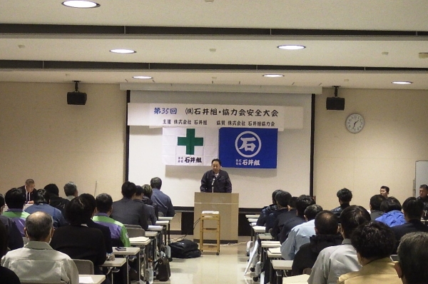 2023年12月16日(土) 石井組・協力会安全大会を開催しました 12月15日、健康長寿アクティブ交流センターあおり館にて、令和5年度の安全大会を開催しました。 コロナも落ち着いたので、4年ぶりに協力会の皆さんにも参加していただきました。 今大会を契機に決意を新たにし、『健康で安心して働ける勤労者生活の実現』を目指して、 労働災害防止活動を積極的に展開し、危険ゼロの安全で快適な職場環境の形成に邁進します。 今回はVRシステム(LookCa)を使った事故体験安全教育も実施されました。