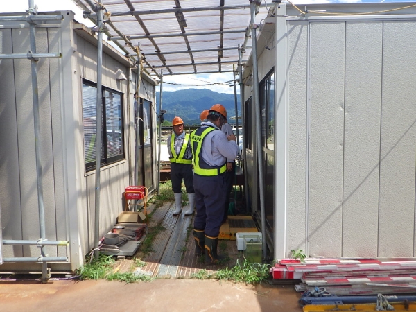 2023年08月23日(水) 安全パトロール 8月23日(水)午後から安全衛生委員会による安全パトロールが実施されました。 作業中の各現場を回り、危険な状態になっている箇所はないか、整理整頓等がされているか、資材や機材がきちんと保管されているかどうかなどをチェックして、問題がある場合は改善していきます。 皆さん、暑い中大変ご苦労様でした。
