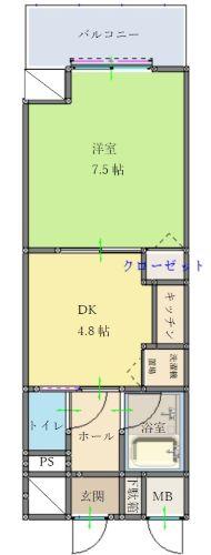 | 間取り | 1DK(洋7.5・DK4.8) | |