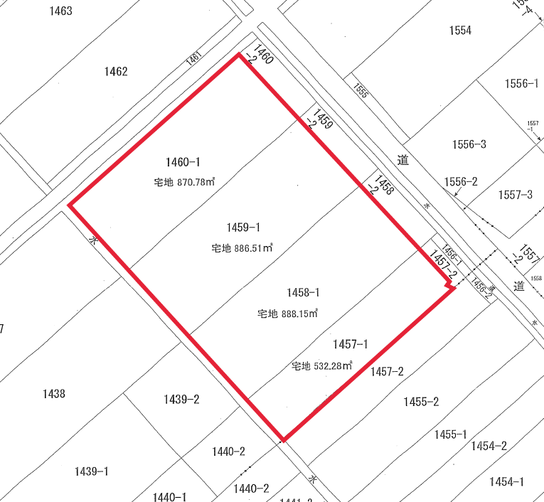 | 土地 | 地番 | 1457番1・1458番1・1459番1、1460番1(合計4筆) |